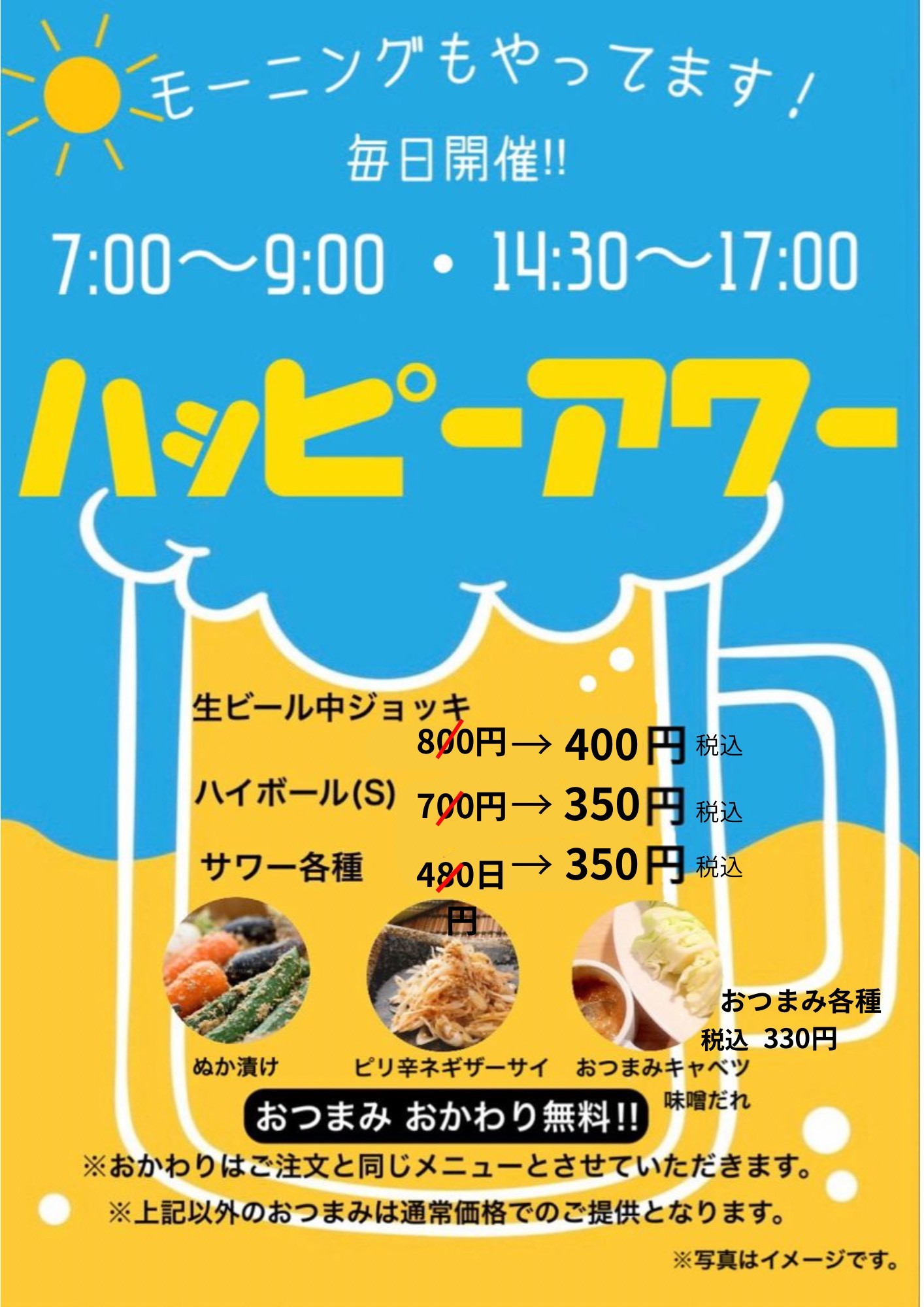 朝(7:00〜9:00)と夕方(14:30〜17:00)に毎日開催しております。